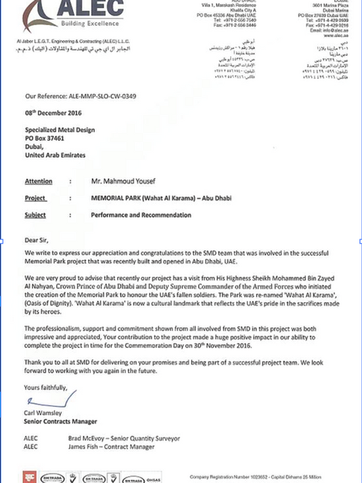 SMD - SIGNAGE & METAL DESIGN L.L.C. was established in Dubai, UAE back in 2006 growing up in a city with an extraordinary success story as a world leader in Enterprise and modernization moving with the city growth momentum SMD was successful to reserve its place as one of the most reputable industry companies in the region, with strong engineering, perfect finishes and piece of art products, our philosophy is simple keen in quality, clean design, meticulous engineering and marvelous finishes